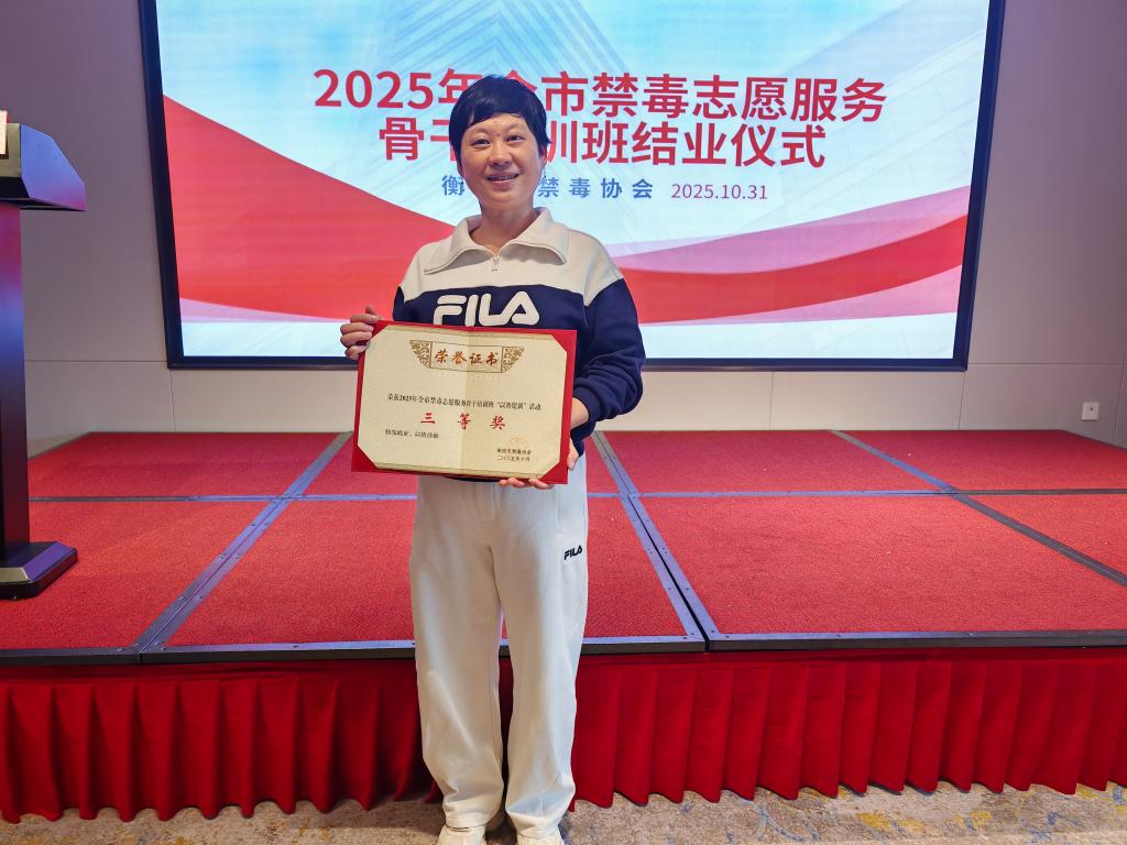 本次培训由衡阳市禁毒协会组织,旨在创新禁毒志愿服务模式。在围绕“精准滴灌·校园守护”等主题的项目路演竞赛中,我校曾琛老师所在团队聚焦高校实际,设计的方案兼具创新性与实操性,赢得了评委的充分肯定,充分展现了学校在禁毒宣传教育领域的专业思考与责任担当。