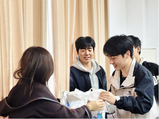 仪式上,全体老师们为学子们发放了加油礼包,内有橙子、旺旺奶糖、百事可乐等八样物品,并配以校庆50周年专属纪念袋,每样物品都寄托着美好寓意。本次加油仪式不仅为备考学子们提供物质上的关怀,更给予精神上的慰藉与方法上的指导。活动最后,全体师生合影留念,将这份温暖的鼓励与期盼定格铭记。(文/井钰婷 图/井钰婷 审稿人/一审:任静 二审:傅娜 三审:刘璟忠)
