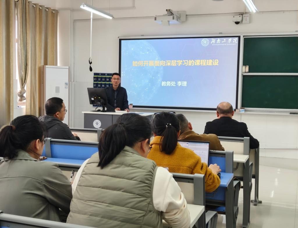 10月28日下午,安工学院特邀教务处处长李理教授,在安工楼5307智慧教室开展课程建设专题培训。本次培训由院长胡鸿主持,学院全体教师参加。