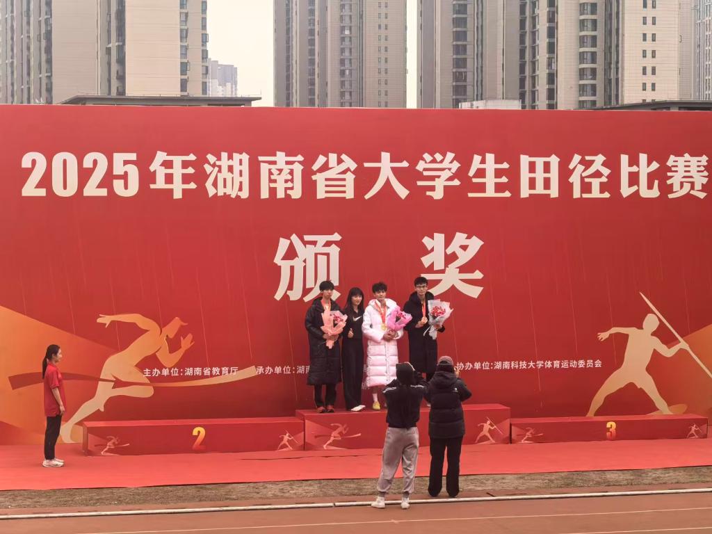 10月29日,在湖南科技大学举办的2025年湖南省大学生田径比赛中,安工2404班黄荣飞在男子跳高项目中以 1.94 米(第二次跳过)的成绩与第一名持平,最终斩获亚军,为学院赢得荣誉。
