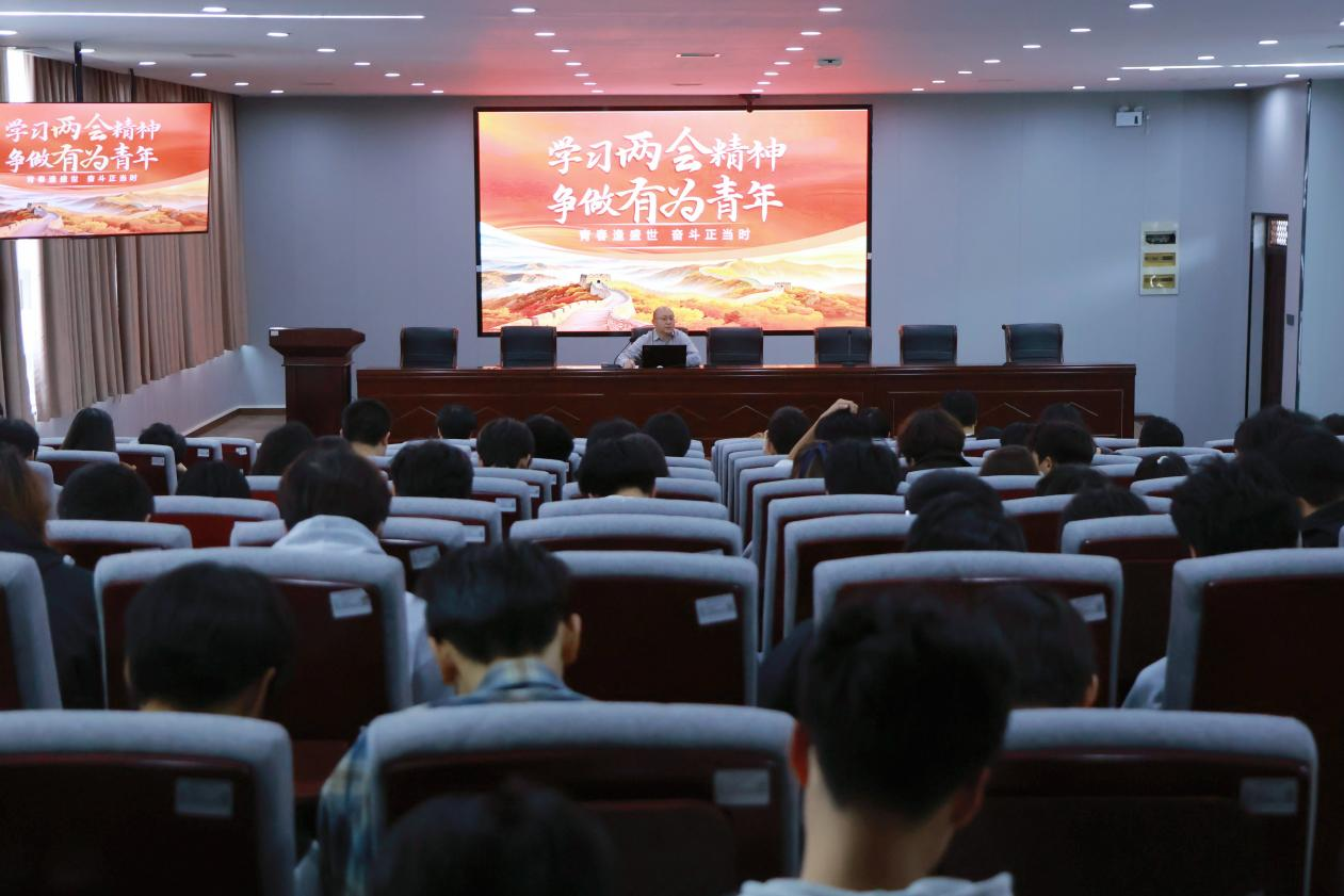 为深入学习贯彻 2026 年全国两会精神,引领青年学子紧跟国家发展步伐、自觉扛起时代使命,4 月 21 日,安全与管理工程学院召开 “学习两会精神、争做有为青年” 主题宣讲会。学院党委副书记李兴旺主讲,各年级学生代表200余人参加本次宣讲。