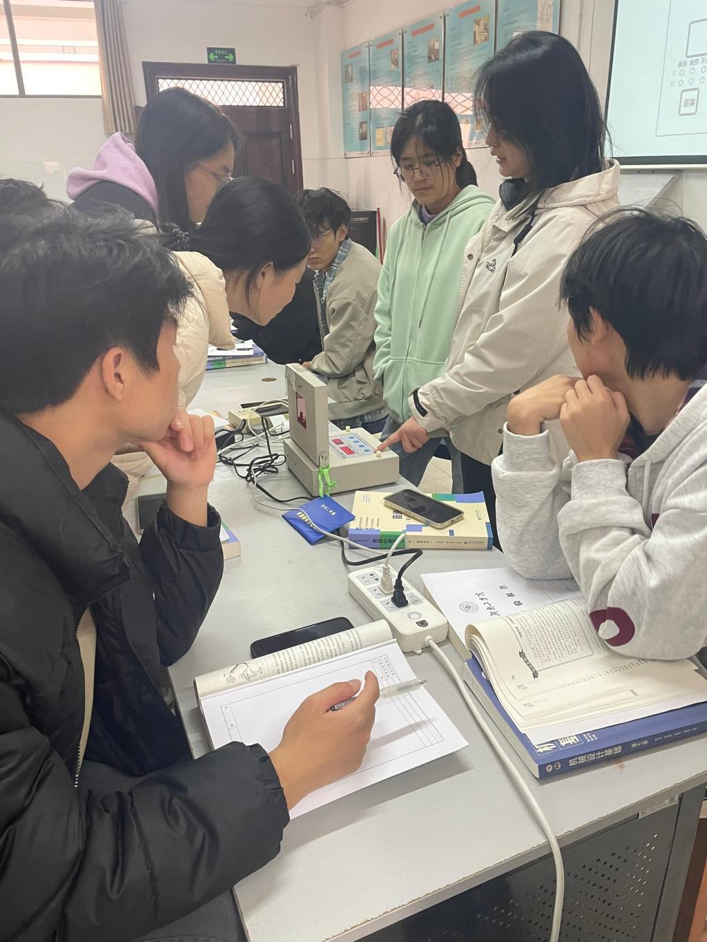 接着,吴文老结合生活实例引导同学们回顾空间知觉的核心概念与实验原理;明确了本次实验课的目标是通过测定辨别复杂图形的反应时来测试被试的空间知觉能力;详细介绍了空间知觉测试仪,并现场演示了实验的主要内容与操作流程,强调了实验过程中的额外变量的控制问题,并给出了一些的数据处理思路与问题讨论方向。随后,吴文老师组织同学们分组开展实验操作,并给予了适时地指导。