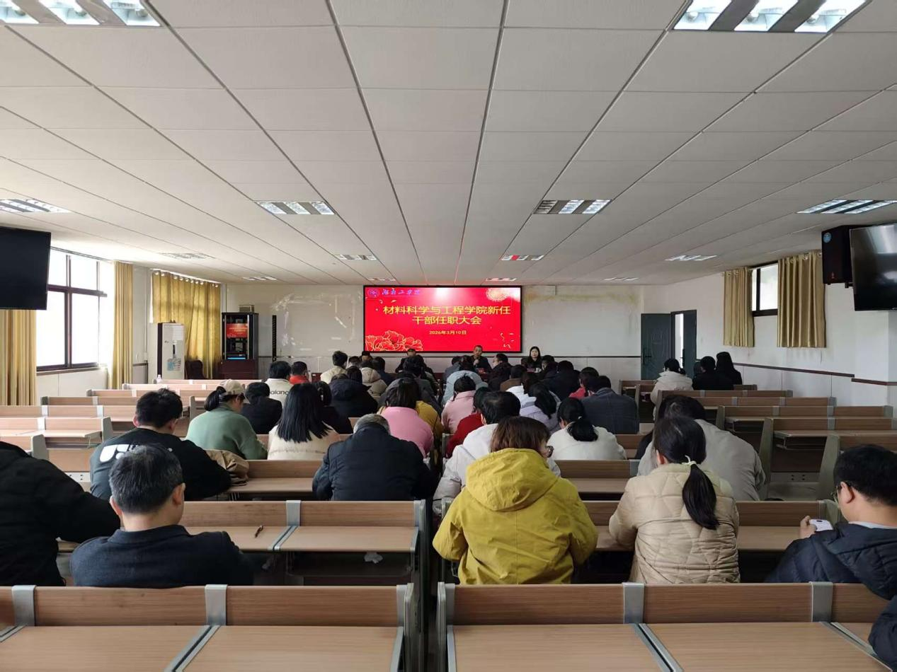 3月10日,材料科学与工程学院在材化楼1301报告厅召开新任干部任职大会。校党委委员、副校长罗建新,校党委组织部副部长杨朗出席会议,学院党委书记刘赢时主持会议,学院全体教职员工参加大会。