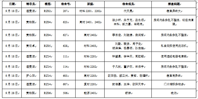 为深入推进宿风建设,营造整洁文明、和谐有序的生活环境,进一步筑牢安全底线、共建温馨家园,2025年9月,材料学院院领导、学工办、宿管部对学生宿舍进行了检查。现将有关情况通报如下: