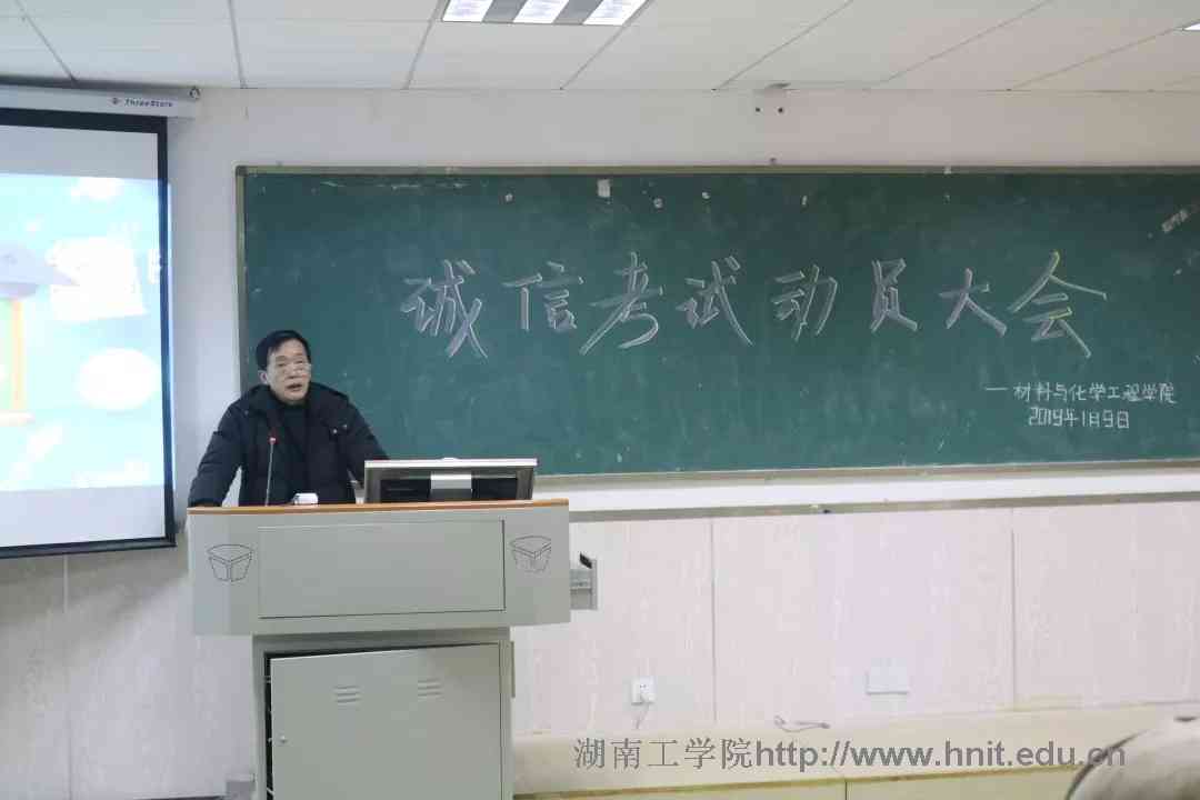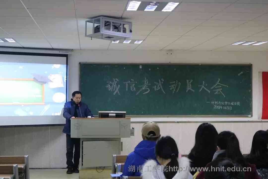大会开始,李来丙为大会致辞,他要求材化学子端正其学习及考试态度,为同学们制定了考试前、考试中、考试后的一系列计划,以及对同学们的心理准备、调整等作出科学指导。同时,他对学生干部提出严格要求,要求学生干部严于律己,做好学生表率。学生代表欧乘风在会上宣读了《湖南工学院考试违纪处理规定》,并带领全体学生做出诚信考试的庄严宣誓,表明了全体材化学子将全力以赴、诚信应考的决心。最后刘湘欣作大会总结,他指出考试不仅考的是知识,更考的是人品和意志,并要求同学们在考试前踏踏实实去准备,考试中沉着冷静、聚精会神去分析题目,同时,他提醒同学们注意人身及财产安全,渡过一个平安、充实而有意义的寒假。