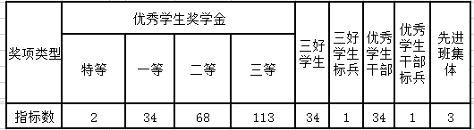 (二)各班级要坚持公开、公平、公正的原则,严格按照学院分配的指标数评选,不能突破和拆分指标数,如有奖项未达到指标数上线,剩余指标数作废。