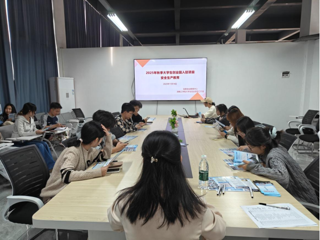 2025年11月14日下午,大学生创业园秋季安全教育会在创业园115会议室举行。会议由创业孵化中心主任陈晓波主持,全体新入驻项目代表参加。