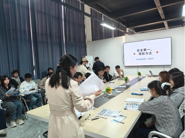 会上,陈晓波围绕“安全第一、预防为主”的核心原则,系统讲解了创业场地用电规范、消防设施使用及应急处置流程等内容,并结合校园创业实际场景中的典型风险案例进行重点提醒。教育会上,陈老师着重强调用电管理、资产维护与保管、谨防诈骗等问题。