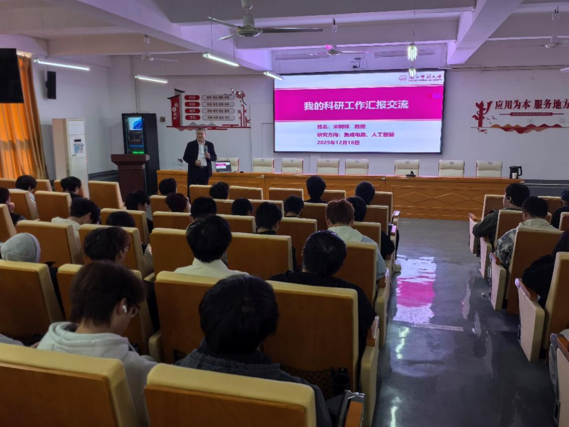 学术引领成长,校友典范启航。同日,学院邀请优秀校友、广西师范大学党委常委、副校长宋树祥教授作学术报告。宋教授结合自身经历分享科研与成长体会,勉励在校学生勤奋学习、回报社会,并介绍了广西师范大学研究生招生情况,现场互动积极。