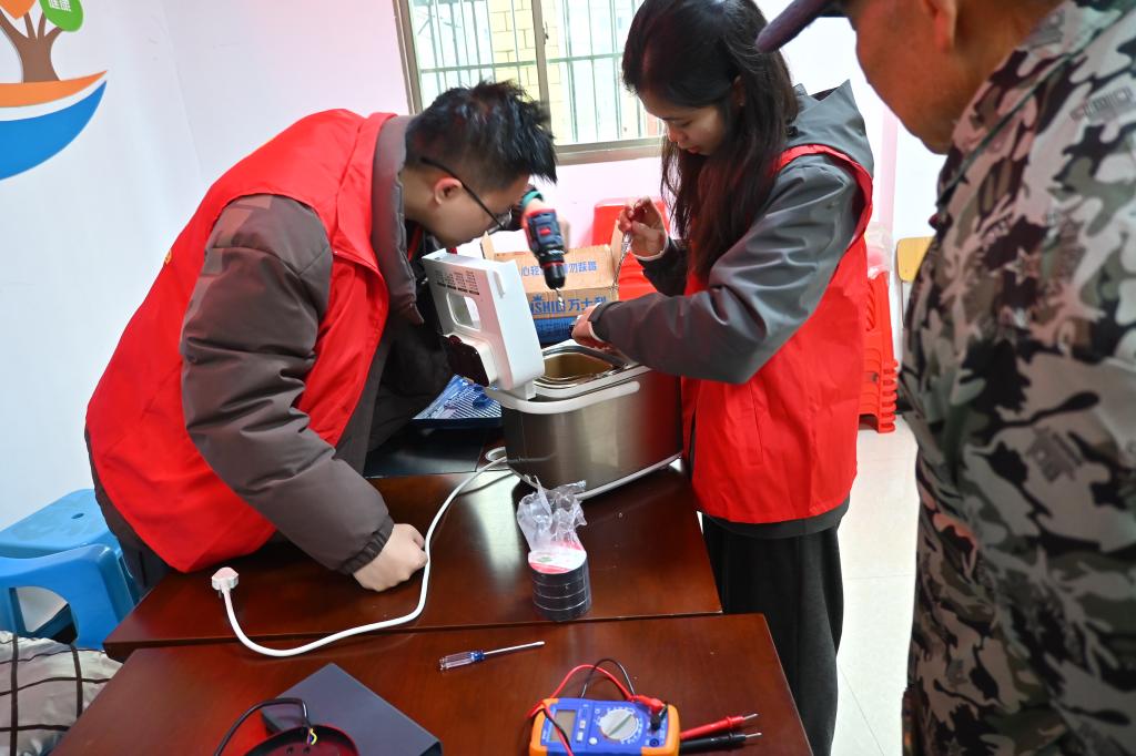活动紧扣电气学科特色,打造集义务维修、安全科普、敬老陪伴、环境整治、文艺展演于一体的多元化服务体系,实现专业所长与民生需求精准对接。在义务维修服务点,志愿者们运用专业知识,为居民免费检修台灯、电风扇、烧水壶、路由器等小家电,排查电路故障、提供保养建议,一件件“带病”家电重获新生,赢得居民连连称赞。