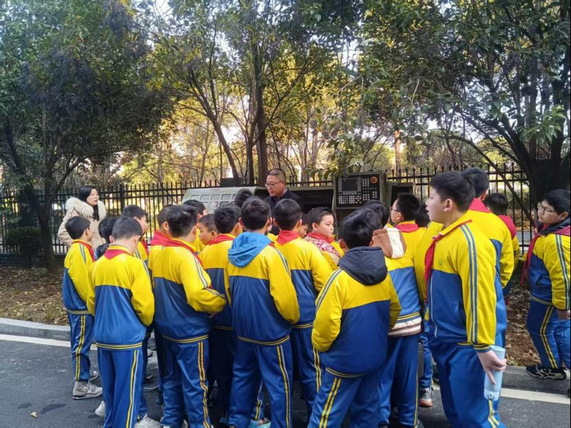 孩子们睁大了眼睛,围绕在机床周围,仔细观察着复杂的结构、巨大的卡盘和锋利的刀具,不时发出惊叹与疑问。“原来零件是这样加工出来的!”“这个摇臂是怎么动的?”真实的工业场景极大地激发了他们的求知欲与探索兴趣。通过李院长深入浅出的讲解,他们初步了解了机床的基本工作原理,更感受到了机械制造的精度之美和工业文明所蕴含的创造伟力。