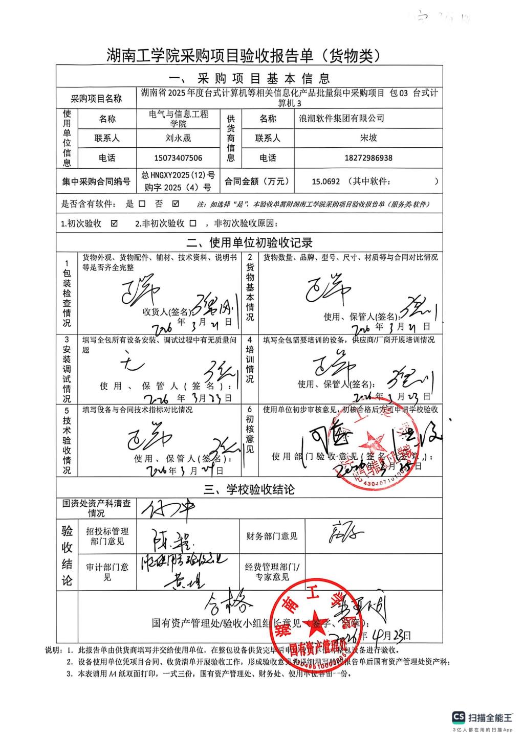 2026年4月关于总HNGXY2025[12]号购字2025[4]号项目验收情况公告