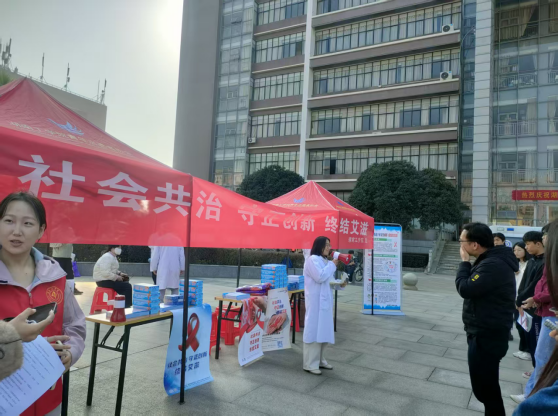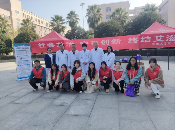 12月1日,我校后勤基建处联合珠晖区人民医院在卓越广场开展了一场以“社会共治 守正创新 终结艾滋”为主题的“世界艾滋病日”宣传教育活动。