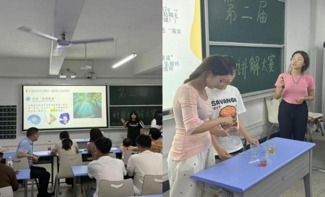 活动现场,同学们以饱满的热情充分展示着化学的魅力,并向同学们演示了一系列生动有趣的科普实验。科普讲解特等奖作品:“揭秘光的魔法轨迹——探索丁达尔效应”、“魔法爆珠世界:神奇的离子交联实验”的选手们,分别围绕丁达尔效应原理、微观世界的奥妙等为主题,采用课堂教学的形式展开精彩的讲解,令人叹为观止。