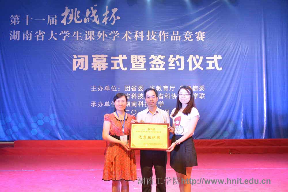 近日,第十一届“挑战杯”湖南省大学生课外学术科技作品竞赛终审决赛在湘潭落下帷幕。校团委获优秀组织奖,《大湘南旅游圈区域合作模式与协调共进对策研究》等7件作品获三等奖。