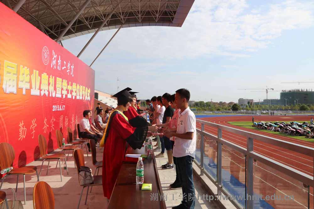 校学位委员会成员、党政办、组织部、宣传部、教务处、教评处、国际合作交流处、学生工作处、科技产业处、招生与就业指导处、后勤管理处、保卫处、图书馆、团委等部门主要负责人,各学院正副院长及党总支正副书记、教师代表、全体2015届毕业生及毕业生家长代表参加了仪式。(周丹)