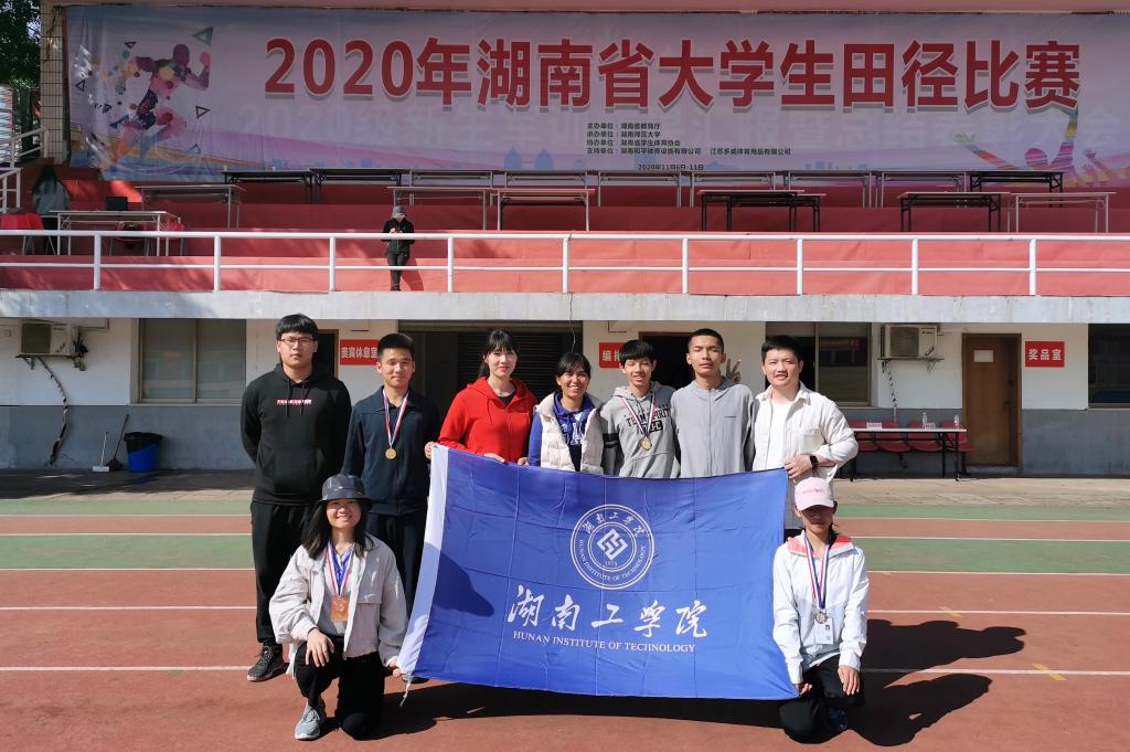 11月5日至11日,由湖南省教育厅主办、湖南省学生体协协办的2020年湖南省大学生田径比赛在湖南师范大学举行,体育教学部向影姣、刘易华、沈艳老师带领校田径队参赛。本次田径比赛不分组别,我校由5名文化生组成的队伍与其他体育院校专业选手同场竞技,经过一番激烈角逐,我校田径队获得两金一银两铜的好成绩,所有参赛队员均得到奖牌。