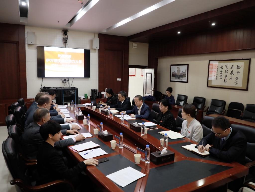 10月23日,俄罗斯伊万诺沃国立动力大学校长列杜霍夫斯基·格里戈尔·瓦西里耶维奇率代表团来校访问交流。我校党委书记曹执令,党委副书记、校长曾广胜分别与代表团一行举行会谈。俄罗斯伊万诺沃国立动力大学副校长伊利亚·苏雷年科夫,我校副校长柳星出席会谈。