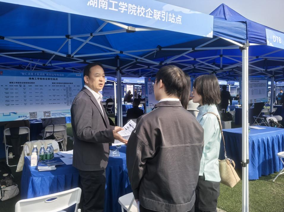 11月1日,“智汇潇湘 才聚湖南”2025年湖南省促进高校毕业生就业创业系列活动南京站专场招聘活动在南京大学仙林校区举行。学校党委副书记、校长曾广胜教授全程参加招聘活动,并接受潇湘晨报、中人社传媒等媒体采访。