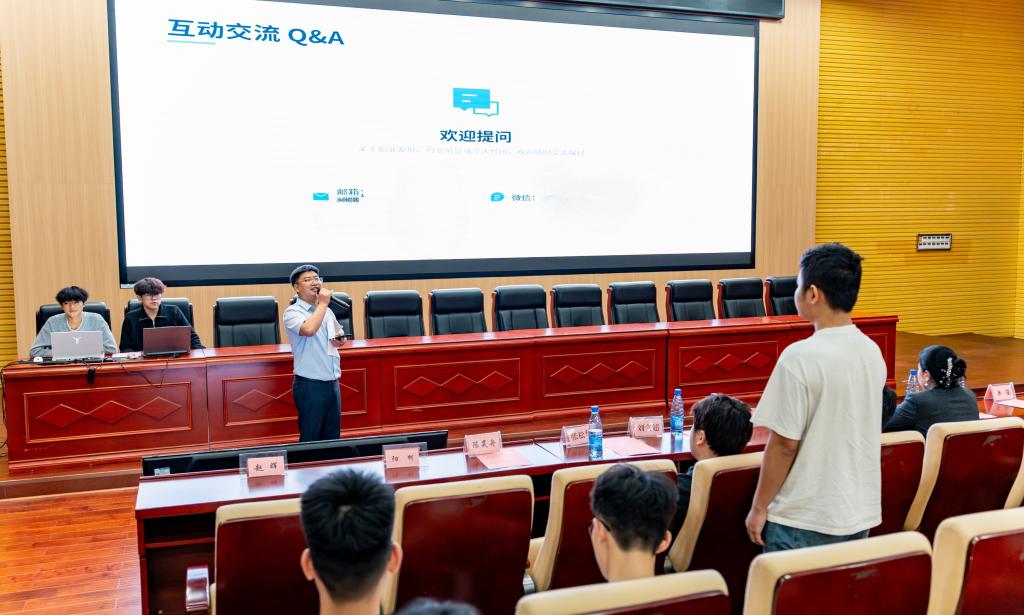 互动环节,陈佳现场抛出专业学习、职业规划等问题,同学们踊跃举手、积极发言,结合自身困惑踊跃交流。陈佳逐一耐心解答、精准点拨,现场掌声不断,充分展现校友与在校生的深度互动与情感共鸣。