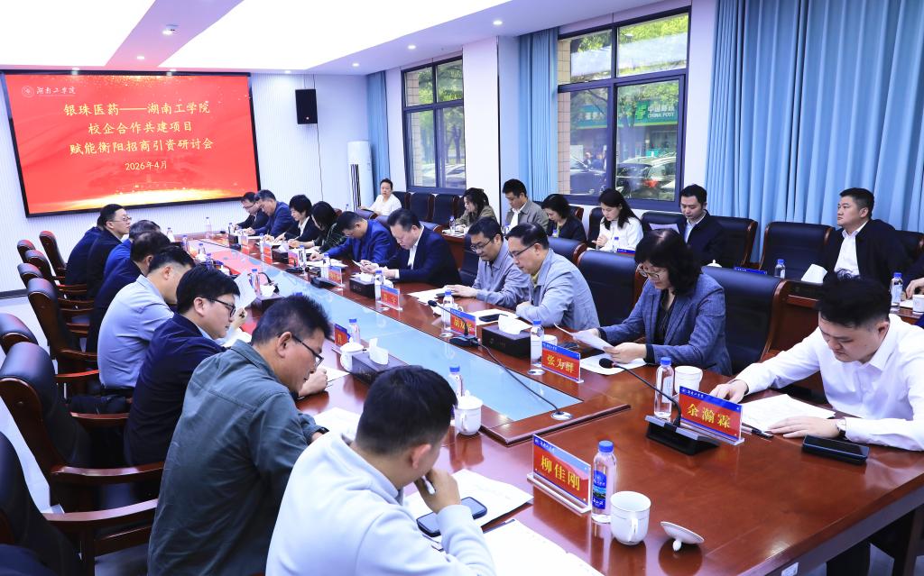 4月15日下午,银珠医药—湖南工学院校企合作:共建项目赋能衡阳招商引资研讨会在我校举行。校党委副书记、校长曾广胜,衡阳市人大常委会副主任、珠晖区委书记魏中发,珠晖区委副书记、区长樊浪波,广东银珠医药科技有限公司总裁兼首席科学官胡双华,灯塔瓴科中西部品牌运营总监余瀚霖出席会议。会议由校党委副书记何建雄主持。