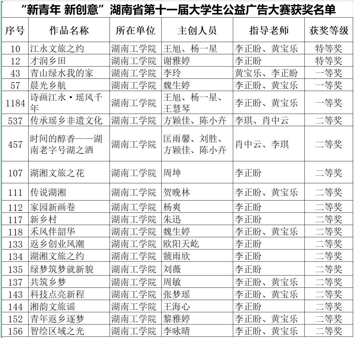 近日,湖南省第十一届大学生公益广告大赛获奖名单公布,我校学子共获特等奖2项、一等奖3项、二等奖15项、三等奖33项,获奖总数创历史新高。