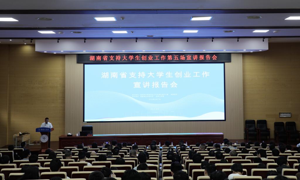 4月27日下午,湖南省支持大学生创业工作第五场宣讲报告会在我校明翰报告厅举行。衡阳市支持大学生创业工作专班,学校党委书记刘朝晖、衡阳师范学院校长魏晓林等多所高校相关负责人及师生代表参加报告会。报告会由我校党委委员、副校长罗建新主持。