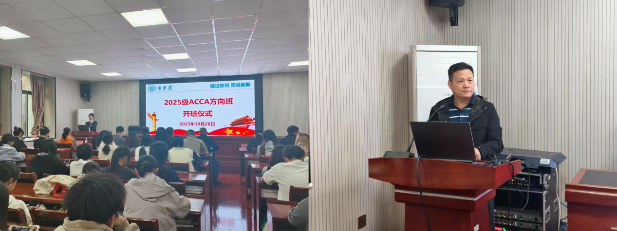 10月28日,商学院2025级ACCA方向班开班仪式在经302报告厅举行。学院党委书记曹文明、副院长李闯、朱纪红、ACCA协会长沙办公室商务发展经理张伟强、高顿教育校企合作事业部南方区总经理林华壤、校企合作事业部经理陈荣、事业部运营主管黄惠迁、高顿教育长沙分校学习管理师杨雪媚及ACCA全体辅导员、班主任、各年级同学参加本次活动。仪式由ACCA2501班胡湘主持。