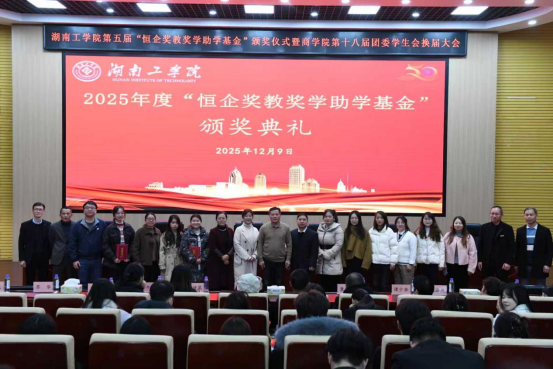 12月9日,湖南工学院第五届“恒企奖教奖学助学基金”颁奖仪式在明翰报告厅举行。开元教育衡阳校区校长江健,校教育基金会理事长罗晓君,商学院党委书记曹文明,商学院副院长李闯、朱纪红、黄飞,教研室主任,学工办教师等出席仪式,获奖受助师生参加颁奖仪式,颁奖仪式由李闯主持。