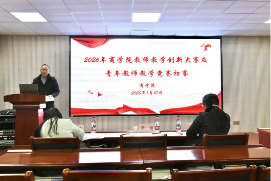 为深入推动教学改革,激发广大教师更新教育理念、掌握现代教学方法的热情,1月10日,商学院在经302教室举办2026年教师教学创新大赛暨青年教师课堂教学竞赛初赛。学院特邀省级教学竞赛获奖者、教学督导组及教学经验丰富的教师担任评委,全院教师观摩学习,比赛由副院长李闯主持。