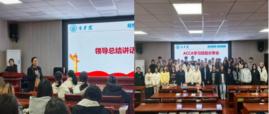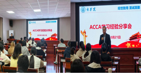 为助力学子高效备考ACCA、明确学业方向,10月21日,商学院于经管楼302举行ACCA学习经验分享会。副院长李闯、朱纪红,辅导员彭天琼到场指导,ACCA方向班24、25级全体学生参与本次会议。优秀学员代表ACCA2301班胡灿、蒋菲、刘卓敏,ACCA2401班李鑫原从报考流程、备考方法、考试心态等视角进行经验分享。分享会由ACCA2401班刘倩主持。