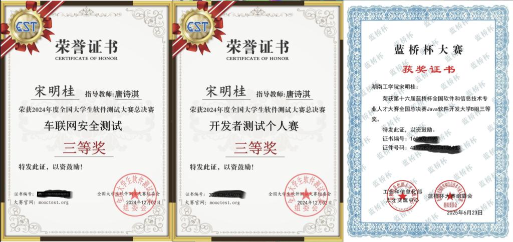 宋明桂,男,汉族,计算机科学与工程学院2023级软件工程专业学生。在校期间,荣获国家励志奖学金1次、校级优秀学生奖学金1次,现任计算机科学与工程学院计算机协会游戏部部长。先后斩获全国大学生软件测试大赛双赛道国家级奖项、蓝桥杯国家级奖项及计算机设计大赛赛区一等奖。他以赛促学,凭借扎实的专业能力与坚毅的品质,生动诠释了国家励志奖学金获得者自强不息、锐意进取的榜样风采。