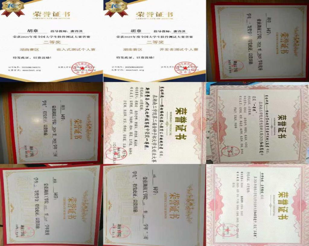 胡章,男,汉族,计算机科学与工程学院2023级软件工程专业学生,担任班级学习委员、计算机学院团委学生会学习部副部长。在校期间荣获国家励志奖学金1次、2025年全国大学生软件测试大赛开发者与嵌入式赛道省级二等奖、第二届金种子杯大学生创业大赛校级一等奖、2025年大学生创新大赛红旅赛道校级一等奖,获校级一等奖学金1次、校级二等奖学金1次,获评校级三好学生2次、优秀班委1次。