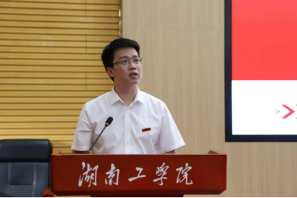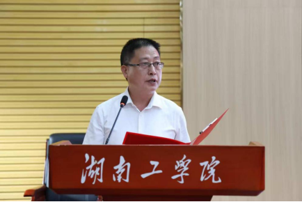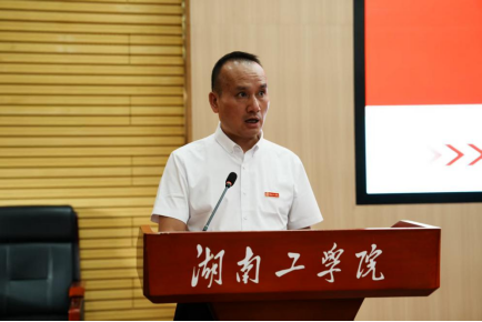 学院党委书记刘斌代表学院向全体新生表示热烈欢迎,向全体教职工致以崇高敬意。刘书记在致辞中回顾了学院与学校同呼吸、共命运的发展历程,介绍了学院在学科建设、教学科研、校企合作等方面的成果。他指出,学院始终坚守育人初心,传承“勤学、务实、圆融、卓越”的校训和“无私奉献、开拓进取、睿智圆融、追求卓越”的湖工精神,为国家和社会培养了大批优秀人才。面向未来,刘书记对全体师生提出三点期望:一是坚守初心,做精神传承的践行者;二是勤学笃行,做本领过硬的实干家;三是开拓创新,做时代浪潮的引领者。他鼓励新生以青春为笔、奋斗为墨,在湖南工学院书写无悔青春篇章。