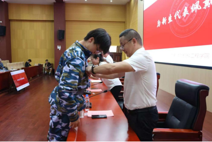 在仪式环节,学院领导为新生代表佩戴了校徽。校徽是荣誉的象征,更是责任的传承。从戴上校徽的这一刻起,同学们便正式成为湖南工学院智能制造与机械工程学院的一员,希望同学们铭记这份荣光,以校徽为指引,砥砺品格,刻苦钻研。