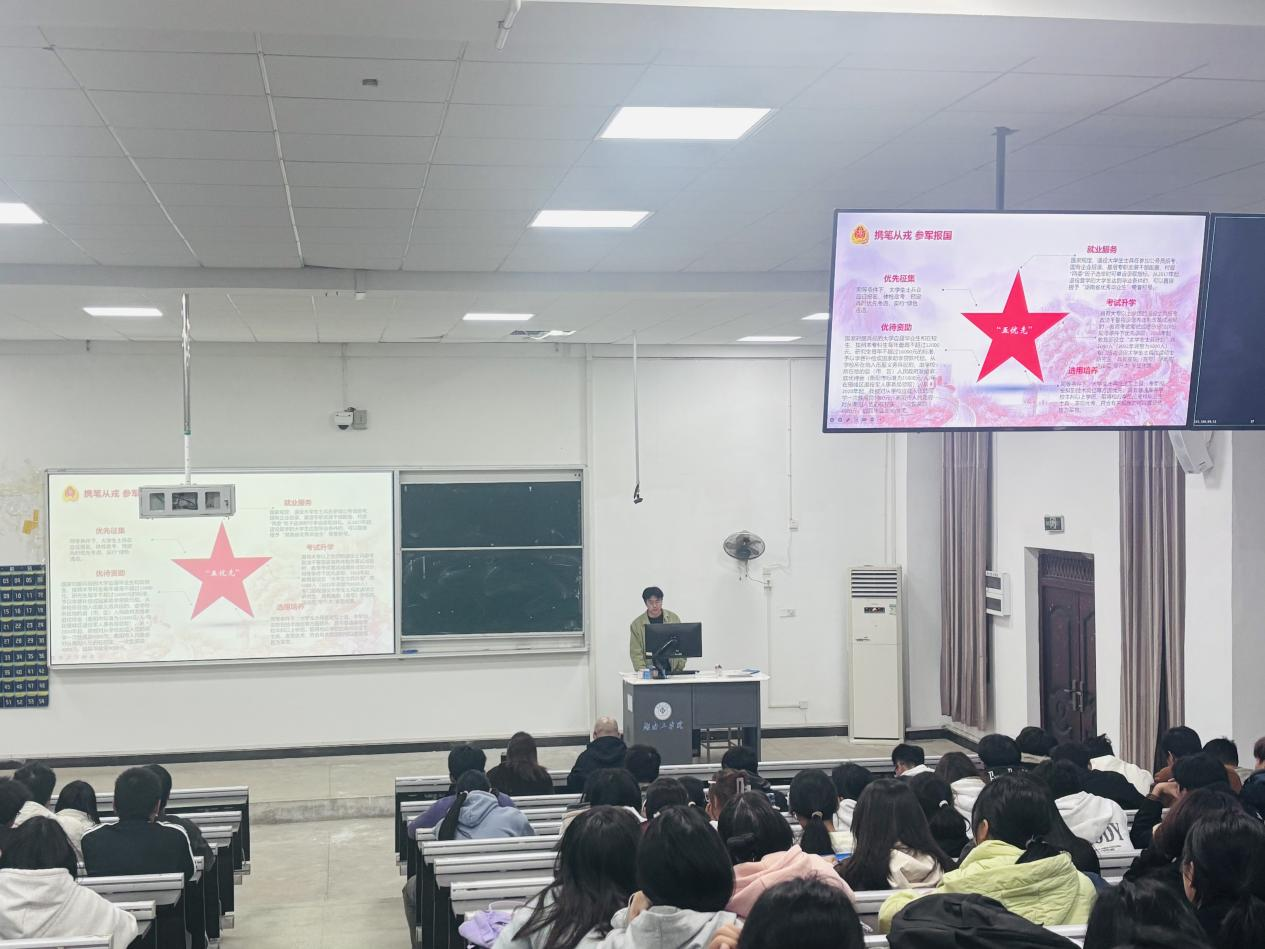 周海龙围绕2025年征兵政策的核心内容,从征集对象与条件、报名时间与流程、入伍优惠政策、部队发展前景四个维度进行了系统讲解,清晰梳理了大学生入伍在政治荣誉、经济补助、学业保障、就业扶持等方面的优厚待遇,包括保留学籍、考研加分、考公定向招录名额,以及地方政府和学校发放的入伍奖励金、部队津贴等,让同学们对入伍后的各项保障有了直观且明确的认识,消除了大家对学业、就业的后顾之忧。