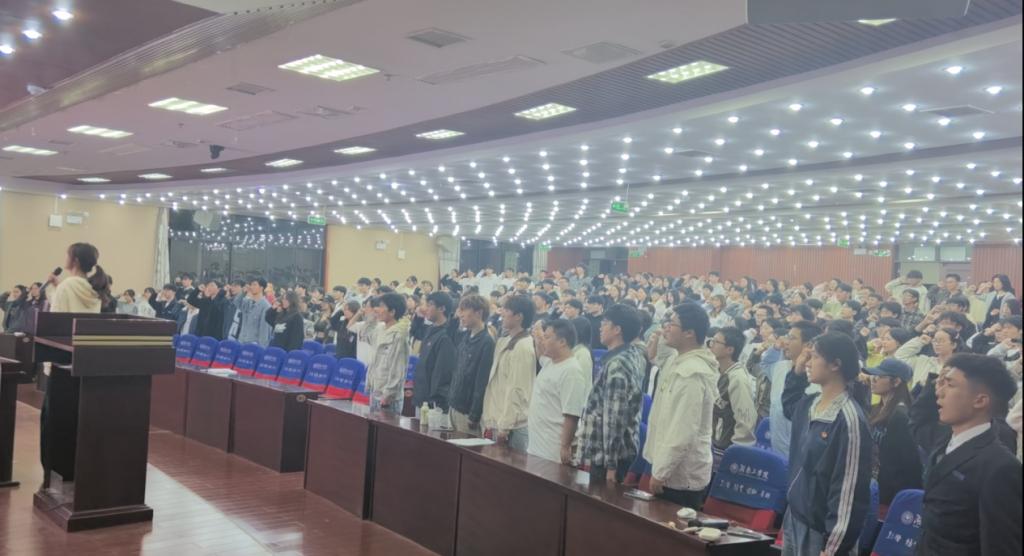 全体学生在学生代表领誓下庄严宣誓:“我郑重承诺:铭记恩情,励志成才;勤俭节约,恪守诚信;刻苦学习,奋发图强;传递温暖,回报社会!请祖国放心!请学校放心!请老师放心!”铿锵誓言展现了理学院学子践行诚信的坚定决心。