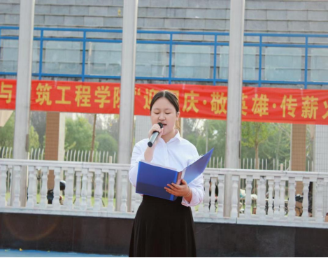 土木学院造价2301班刘颜同学在国旗下演讲,致敬为国奉献的英雄楷模,并探讨新时代青年的责任。