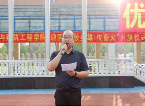 9月29日早晨,土木与建筑工程学院在校北区田径场举行“迎国庆·敬英雄·传薪火”升旗仪式,学院党委副书记陈浩、全体辅导员以及土木学院全体在校学生参加仪式。