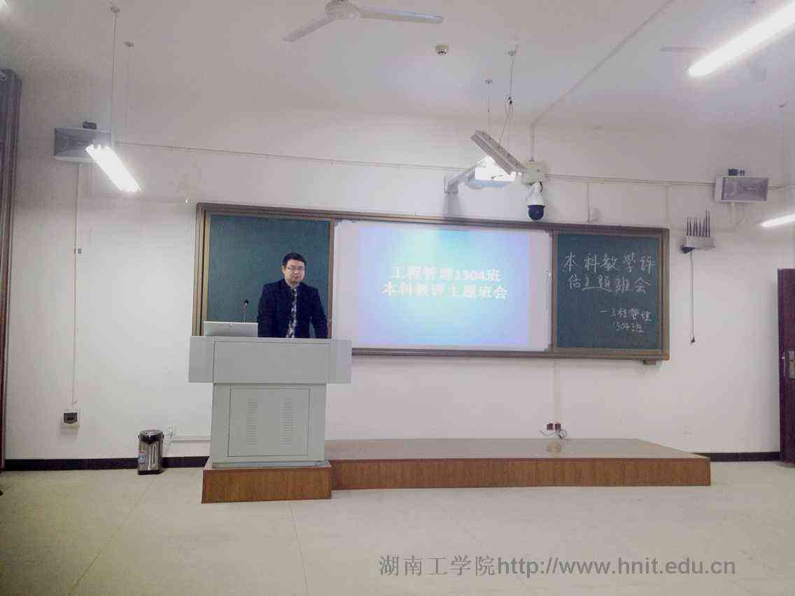 11月12日,建工学院工程管理1304班在6302召开学习评估知识主题班会,联系班级的思想政治理论课教学科研部主任李春生、班主任贾东风、辅导员王云峰参加了班会。