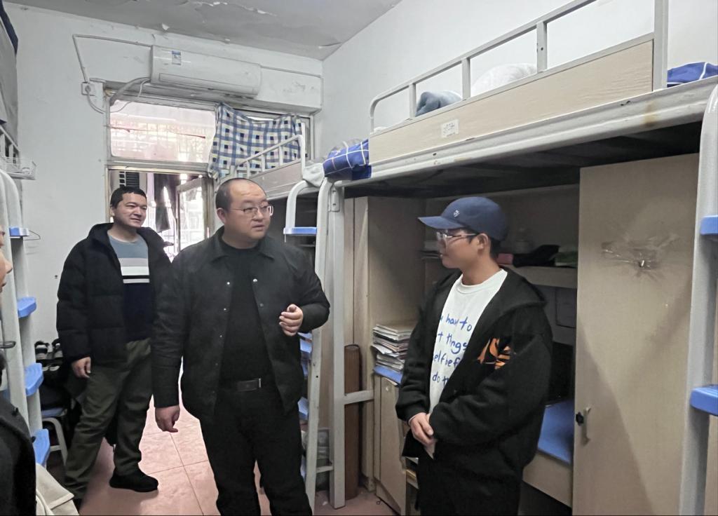 在走访宿舍过程中,陈浩与同学们亲切交流,详细了解大家的日常生活与学习状况,认真倾听同学们面临的问题和困难,并向同学们强调,违规使用电器、私拉电线以及在消防通道晾晒衣物等看似平常的行为,实则隐藏着巨大的安全风险。