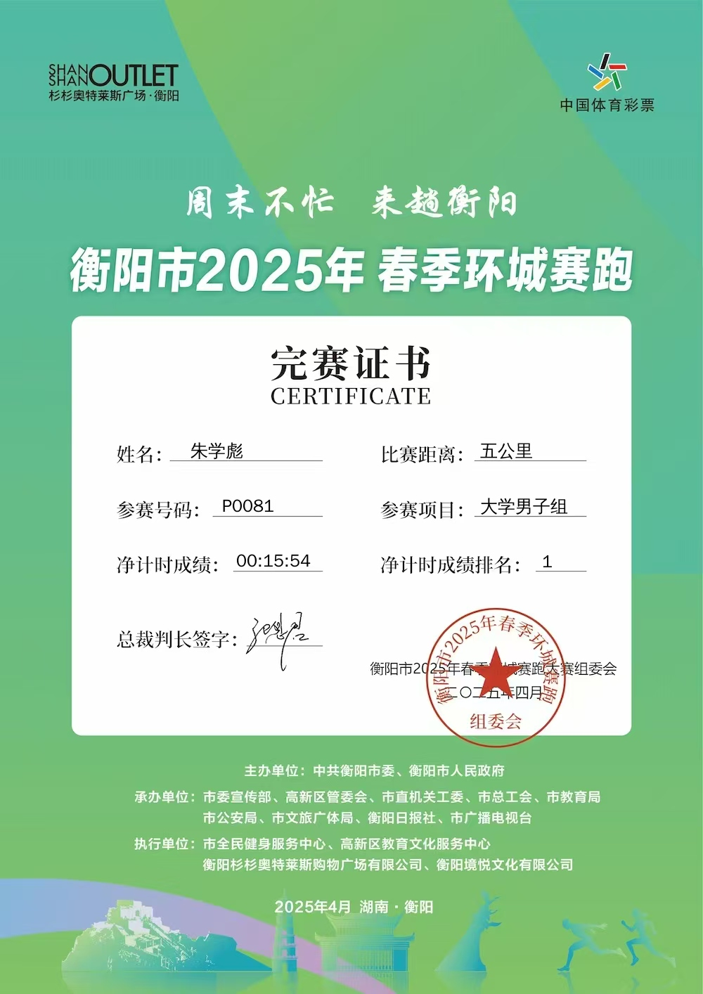 2025年4月26日早上8点,以“周末不忙,来趟衡阳”为主题的衡阳市2025年春季环城赛跑如期举行。我校共派出43名学子参加了此次比赛,我校学子凭借出色的发挥和顽强的拼搏精神,获得2025年我校参加校外体育赛事的首金,突显了我校在体育教学方面的卓越实力,为学校赢得了荣誉。