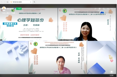湖南省大学生成长讲堂是我省高校心理知识科普周的固定栏目,每年邀约省内外心理专家面向全体学生云端开讲,至今已经举办11届,影响力大、传播面广,是省域高校心理科普的重要平台。为支持青年老师发展,促进省内资源共建共享,我中心毛艳丽老师作为首个省内青年老师受邀主讲。她以“心理学知多少”为题,于本月16日晚与全体师生见面。